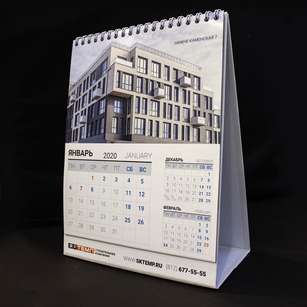 Перекидные — 12 листов на пружине; квартальные — Моно/Трио с курсором и рекламным полем; настольные — домики, перекидные.